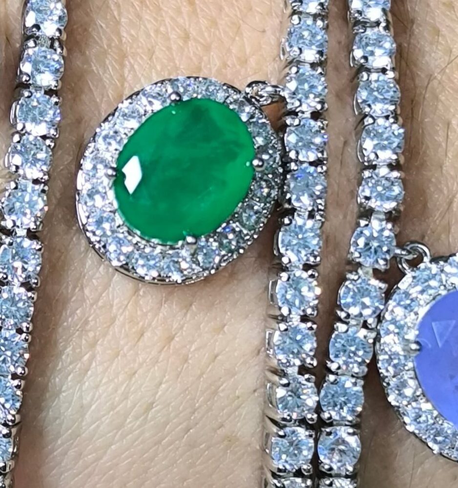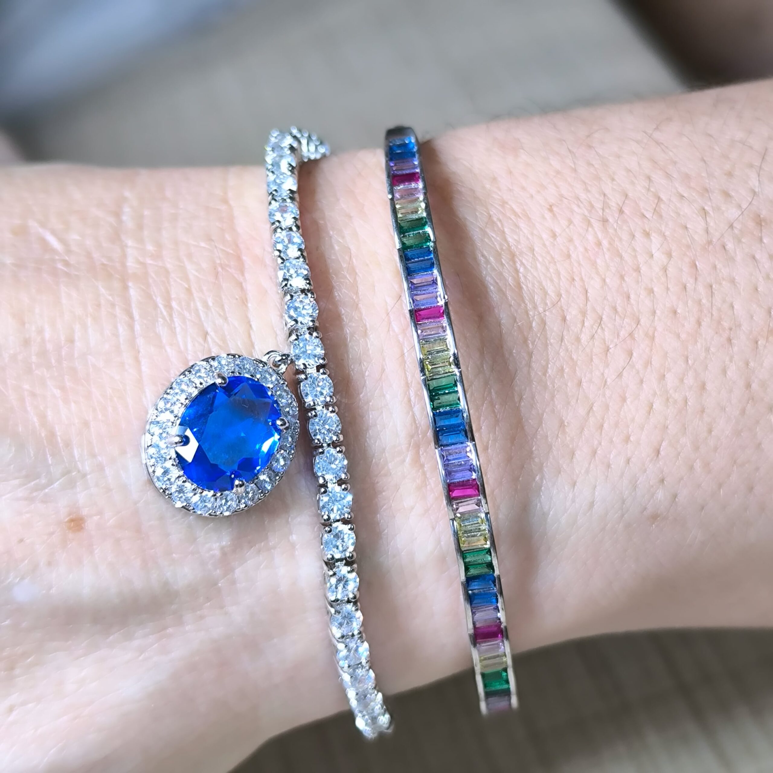 Pulseira Riviera Princesa com zircônias quadradas, super linda com pingente de pedra fusion  na cor lavanda, com fecho de jóia e pega ladrão, no banho de Ródio com garantia de banho de 1 ano.